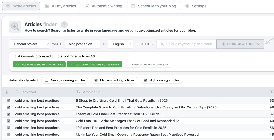 Generate more blog content in less time.- Produce multiple articles in bulk